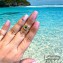 Anel oval com zircônias cristal e detalhe em zircônia verde. Tamanho: 0,9cm de largura. Pode ser usado na falange. Joia com banho de Ouro 18K.
