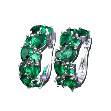 Brincos meia argola com zircônias verdes imitando Esmeraldas. Tamanho: 2,5cm x 1cm. Joia com banho de Ouro Branco 18K.